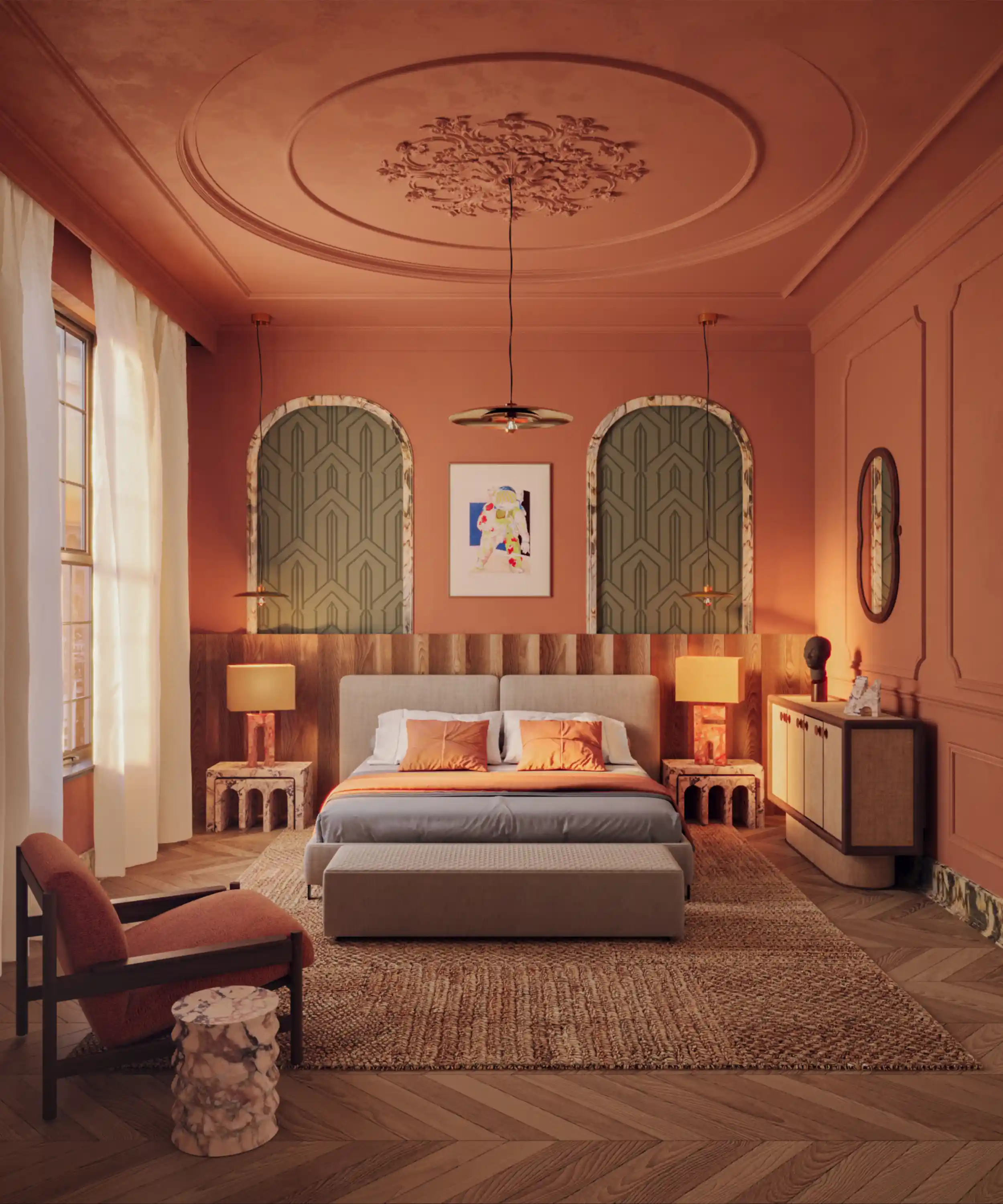 High-end interior renderings illustrate materials, lighting, and layouts so clients can confidently approve design concepts.